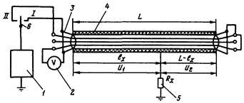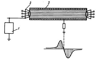 Принцип импульсного метода заключается в том, что в поврежденную кабельную линию посылаются импульсы напряжения (зондирующие импульсы), которые, распространяясь по линии, частично отражаются от неоднородностей волнового сопротивления и возвращаются к месту, откуда они были посланы. Схема подключения измерителя с использованием импульсного метода показана на рис. 4.