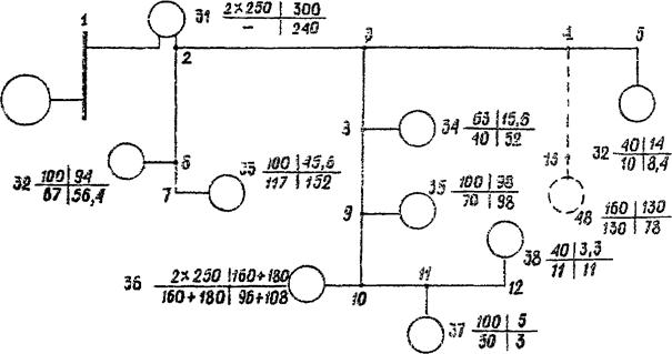 Для расчета нагрузок на ЭВМ составляется таблица исходных данных. В таблицу заносятся шифр нагрузки в соответствии с таблицей П.1.4, величины нагрузки по результатам замеров и их форма представления, номера и длины расчетных участков или их координаты согласно рабочей схеме. При двухтрансформаторных подстанциях для одного из трансформаторов вводится фиктивный участок с нулевой длиной. Например, для ТП № 36 нагрузка одного трансформатора учитывается на участке 9 - 10, второго - на фиктивном участке 10 - 99.