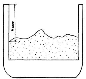 5. Для определения плотности частиц в мерный стеклянный сосуд насыпают порцию сухого груза массой Gгр. Наливают определенный объем Vж жидкости, смачивающей, но не растворяющей частицы груза. Тщательно перемешивают их и затем определяют по делениям на сосуде объем получившейся суспензии Vс. Искомая величина плотности частиц находится по формуле