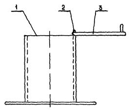 1 - мерный сосуд; 2 - штырь; 3 - поворотная рамка