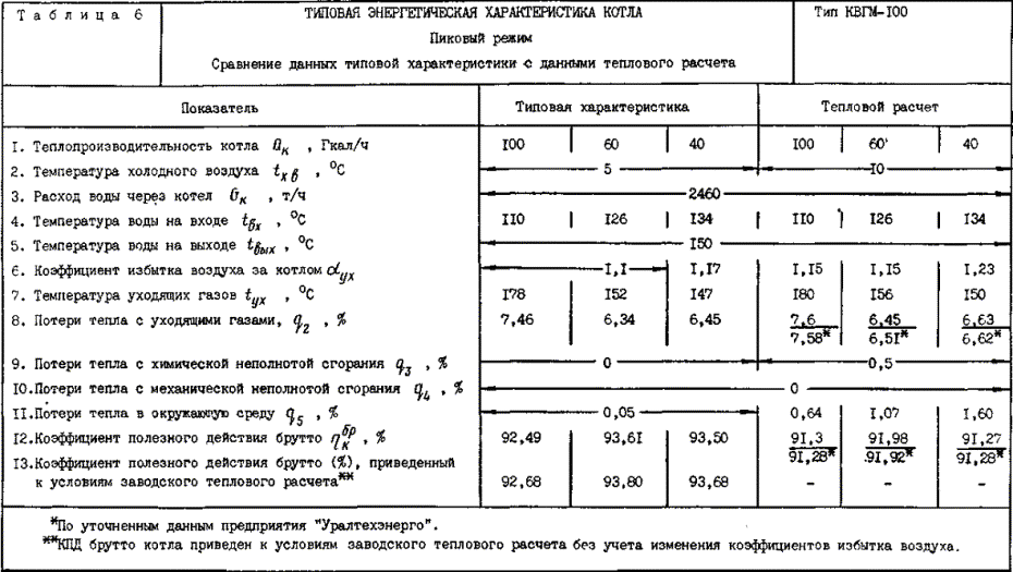 2.1. При составлении характеристики использовались результаты испытаний котлов КВГМ-100, проведенных предприятием Уралтехэнерго и МГП Союзтехэнерго.