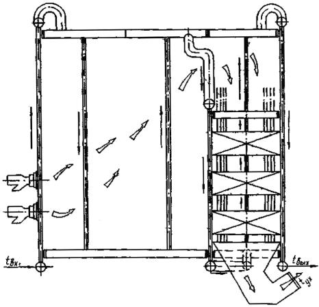 Рис. П1. Принципиальная схема движения воды и газов в котле КВГМ-100