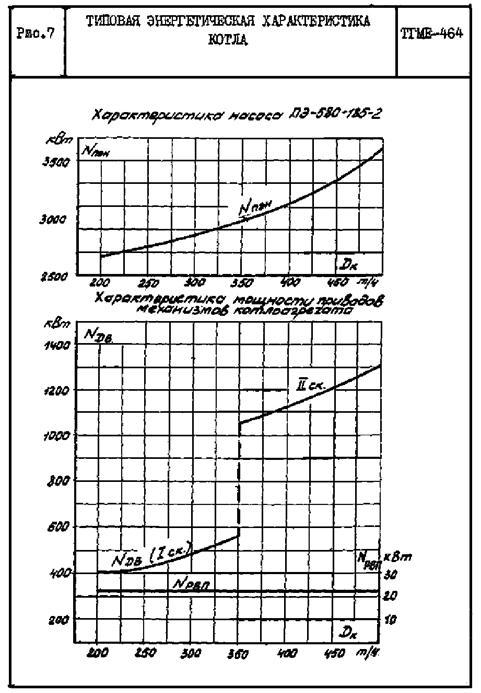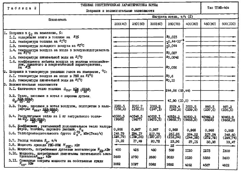 Типовая энергетическая характеристика котла ТГМЕ-464 составлена на базе тепловых испытаний, проведенных Союзтехэнерго на Северодвянской ТЭЦ-2 (котлы № 1, 2), и отражает технически достижимую экономичность котла.
