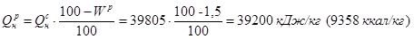 Aр = 0,14 %, Wp = 1,5 %, Sp = 3,5 %,
