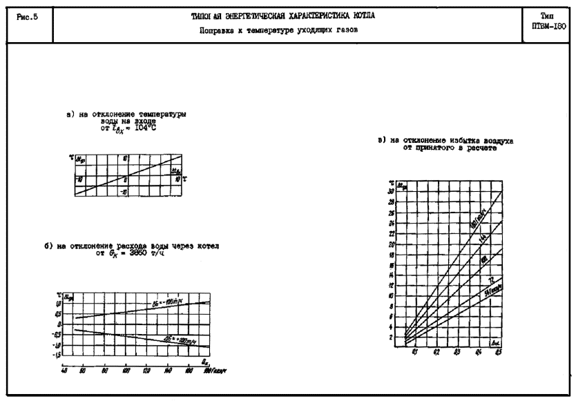 3.1. Для приведения основных нормативных показателей работы котла к измененным условиям его эксплуатации даны поправки в виде графиков (рис. 4,5) и цифровых значений (табл. 2).