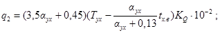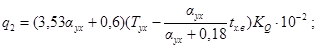 Удельный расход тепла на калориферы (%) рассчитывался по формуле