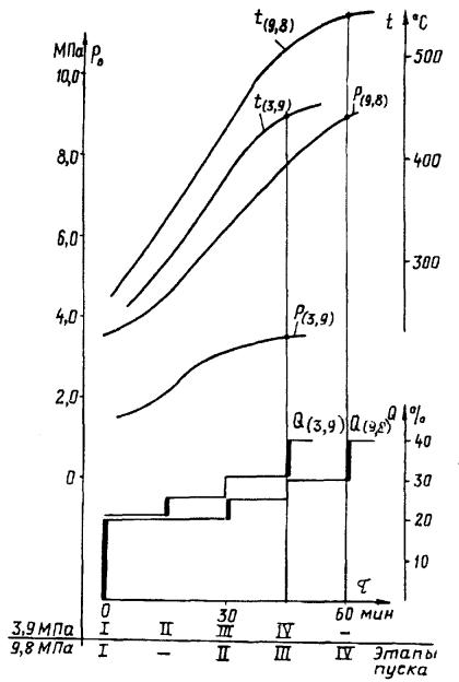 Рис. 2. График-задание пуска котла из холодного состояния: