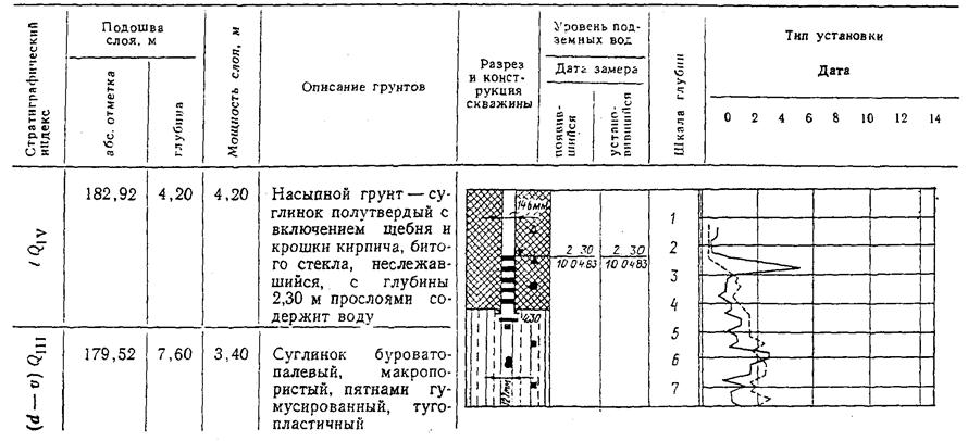 Разрез шурфа (скв.), уровень воды, масштаб 1: |