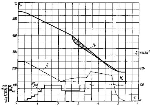 * Давление свежего пара за котлом перед началом операции прикрытия клапана Др-3. ** Температура пара в стопорных клапанах ЦСД турбины примерно через 10 мин после включения генератора и сеть. *** Время розжига взято от подфорсировки после окончания горячей отмывки. **** При исходной температуре ЦСД < 100 °С. |