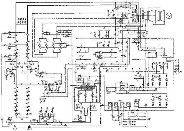 1.1. Настоящая Типовая инструкция разработана для моноблоков 300 МВт с турбинами К-300-240 ЛМЗ, прямоточными котлами и типовой пусковой схемой (рис. 1, см. вклейку), обязательными элементами которой являются шиберные клапаны на отводе пара из встроенных сепараторов (Др-3), растопочный расширитель (Р-20), байпасы промежуточного пароперегревателя и пусковые впрыски в паропроводы горячего промперегрева, пусковые впрыски в главные паропроводы с системой регулируемого давления воды.