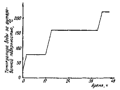 - повышение температуры воды до 220 °С со скоростью не более 30 °С/ч и выдержка при этой температуре в течение 4 ч.