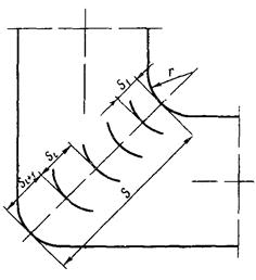 Шаг между лопатками устанавливается по арифметической прогрессии, возрастающей от внутреннего угла к наружному, причем отношение sn+1 к r1 принимается обычно равным двум.