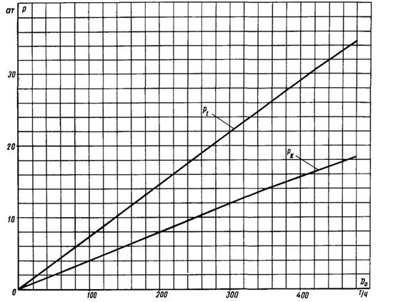Условия: Ро = 90 ат; tо = 500 °С; Dпит = Dо; tпит, tк - графики Т-5а, 5б Регенерация включена полностью по нормальной схеме