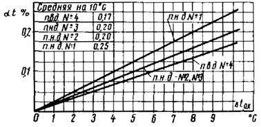 Поправка на температуру входящей охлаждающей воды к расходу пара и тепла при tо.в = 15 °С и W = 16000 м3/ч, средняя на 1 °С, %