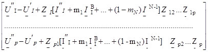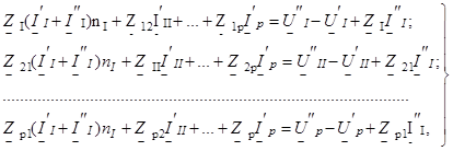 Для общего случая р электромагнитосвязанных по всей трассе однородных ВЛ (см. рис. 2.1, а) расстояние до места КЗ следует вычислять [16] решением системы из р линейных алгебраических уравнений с р неизвестными: