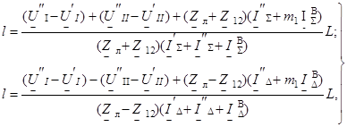 Расчетные формулы для определения расстояния до мест повреждения двухцепных ВД