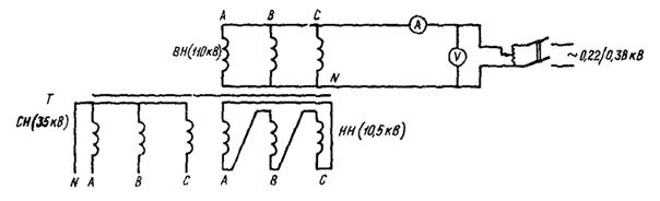 нулевой последовательности, измеряемые там же;