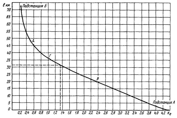 где nI - относительное расстояние от подстанции А до мест КЗ (nI = lI/LI);