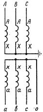 Заземляться должна нулевая точка или один из фазных выводов вторичных обмоток. При соединении основных вторичных обмоток в звезду более распространено заземление одной из фаз (обычно фазы В), а не нуля. Это создает преимущества при проверке под рабочим напряжением правильности сборки и маркировки цепей напряжения.