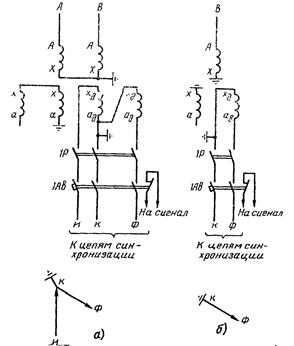 При отсутствии автоматических синхронизаторов разделение заземленной фазы в схеме ручной синхронизации может быть выполнено без разделительных трансформаторов.