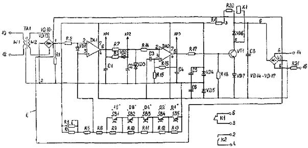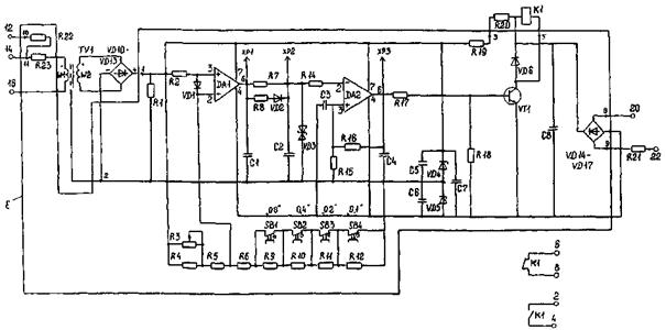 Все элементы схемы реле кроме двух балластных резисторов смонтированы в общем корпусе, состоящем из основания и съемного прозрачного корпуса. Балластные резисторы типа С5-35В установлены на основании реле с наружной стороны Переключатели уставок SB1 - SВ5, выходящие регулируемой частью на наружную сторону лицевой таблички, установлены на плате с печатным монтажом.
