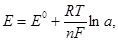 Зависимость потенциала электрода от активности потенциал-образующих ионов в растворе может быть выражена уравнением Нернста