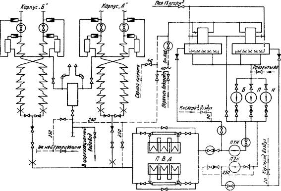 6.3. Для отмывки от меди отдельно питательного тракта, как и в предыдущих вариантах, предусматривается монтаж временного трубопровода диаметром 250 мм перед узлом питания для возврата растворов в деаэраторы и сброса промывочного раствора в узел нейтрализации.