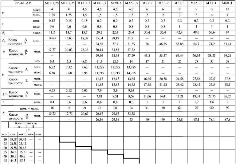 1) Символы обозначения классов прочности по ГОСТ 1759.4 могут быть использованы для размеров резьбы более М48 при условии, что готовое изделие обладает всеми свойствами, необходимыми по ГОСТ 1759.4. 2) Выбирается наименьшая длина |