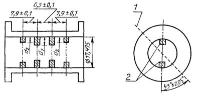 Настройку поляризатора осуществляют винтами. Первоначальная длина винтов указана на рисунке В4. Более точной настройкой добиваются эллиптичности на выходе поляризатора не более 0,5 дБ. Настройку проводят с помощью сигналов с генератора, подаваемых на вход поляризатора через аттенюатор, волноводный переход от прямоугольного волновода к круглому, и специального вращающегося пробника с детекторной головкой. Затем проверяют КСВ поляризатора, который должен быть не более 1,1. Волноводный переход должен иметь КСВ не более 1,05.