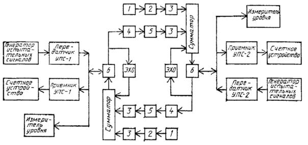 1 - источник помех; 2 - полосовой фильтр на 300 - 3400 Гц; 3 - удлинитель; 4 - имитатор линейных искажений; 5 - имитатор возмущающих воздействия; 6 - дифференциальная система