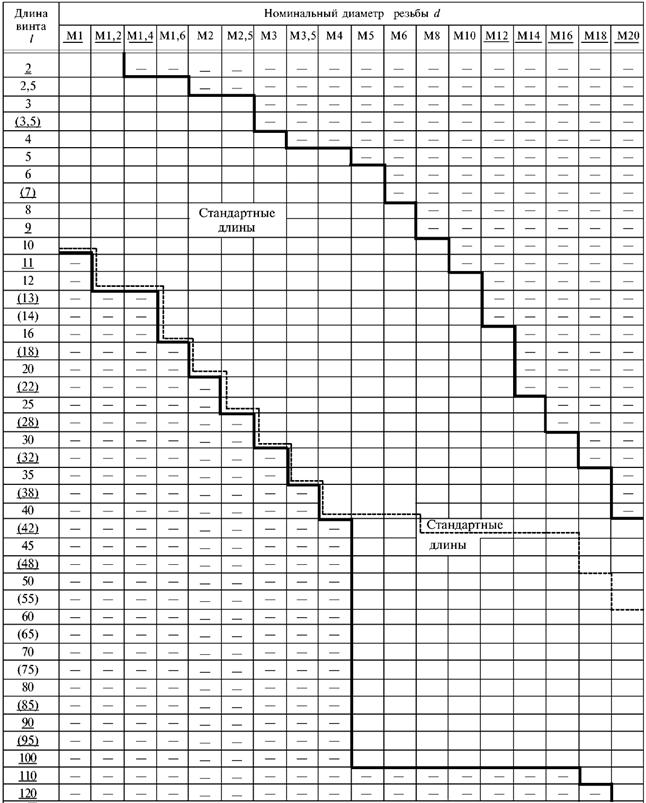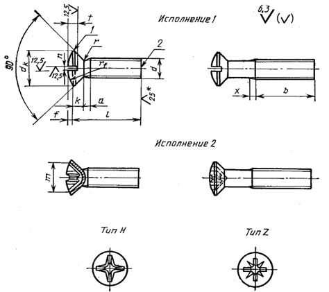 Конструкция и размеры винтов должны соответствовать указанным на рисунке и в таблицах 1 и 2.