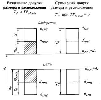 Увеличение его может быть определено с учетом законов распределения отклонений размеров и расположения, доли риска, соотношения между допусками размера и расположения. Ориентировочно для оценки возможного поля технологического рассеивания можно принимать его равным действительному значению зависимого допуска расположения при выполнении действительных размеров элементов в середине поля допуска размеров.