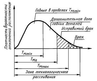 1. Технологические преимущества зависимых допусков формы и расположения по сравнению с независимыми состоят прежде всего в том, что они позволяют применить менее точные, но более экономичные способы обработки и оборудование, а также снизить потери от брака. Если поле технологического рассеивания отклонений расположения превышает значение допуска расположения (независимого или зависимого), то при зависимых допусках расположения доля годных деталей повышается по сравнению с независимыми допусками за счет:
