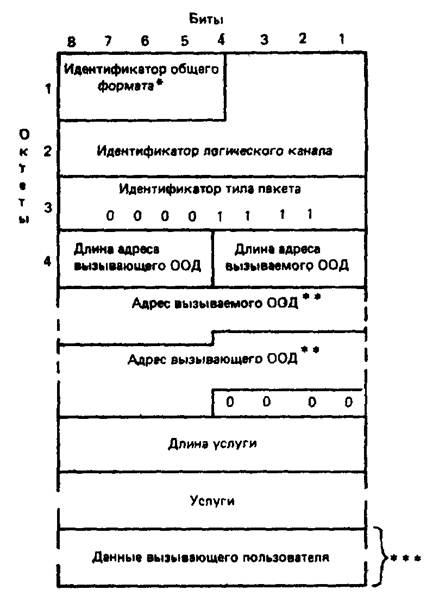 Примечание. Возможности «тип адресации» и «индикация нумерованного плана», введенные в версию рекомендации X 25 МККТТ 1988 г, не включены в настоящий стандарт, поскольку МККТТ оставил их для дальнейшего изучения
