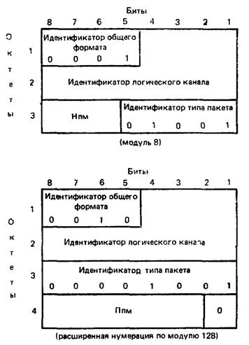 Пакет ДАННЫЕ короче четырех октетов при нумерации по модулю 128 |