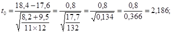 Хотя различие статистически незначимо, но t0 примерно равно tтабл, это значит, что метод В может быть принят как контрольный, либо необходимо провести дополнительные эксперименты.