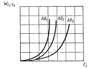 скорость окисления материала WciТэ при заданной концентрации Ci по