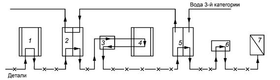 3.2 Локальная система водоснабжения предусматривает очистку промывной воды после одной технологической операции и возврат ее на промывку после этой же операции. Локальные системы, как правило, размещаются рядом или встраиваются в технологическую цепочку (рисунок 6).