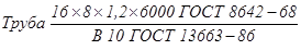 Труба наружными размерами А = 16 мм, B = 8 мм, толщиной стенки s = 1,2 мм, длиной кратной 1500 мм, из стали марки 10, группы В ГОСТ 13663-86