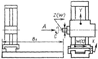 1 - с неподвижной передней стойкой и столом, имеющим продольное и поперечное (относительно оси выдвижного шпинделя) перемещения;