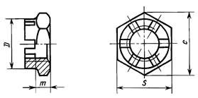 Настоящий стандарт распространяется на низкие прорезные и корончатые шестигранные гайки класса точности А с диаметром резьбы от 6 до 48 мм.