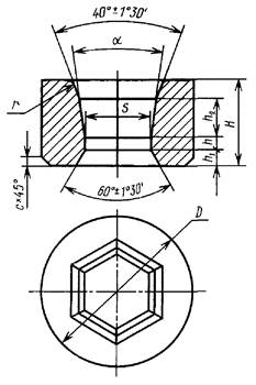 4. Допускается скругление ребер шестигранника радиусом не более 1,5 мм.