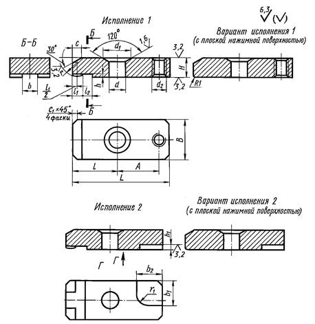 1. Конструкция и размеры прихватов должны соответствовать указанным на чертеже и в таблице.