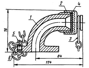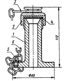 1 - корпус; 2 - заглушка; 3 - кольцо; 4 - прокладка; 5 - рым; 6 - цепочка
