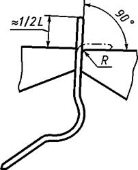 Для испытания на загиб предварительно разведенный шплинт зажимают вертикально в губках параллельных тисков (черт. 3) таким образом, чтобы загиб приходился на прямой участок ветви шплинта.