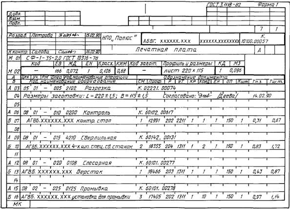 Маршрутная карта (МК) по ГОСТ 3.1118 формы 1, 1а, 1б, 3, 3а, 3б, 5, 5а |