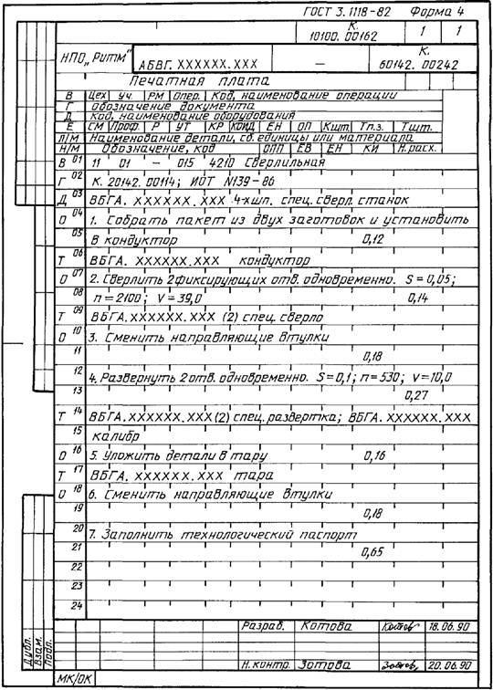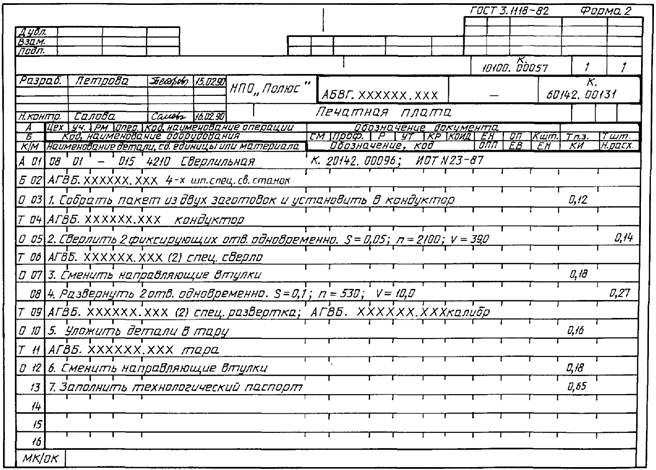 Описание единичного технологического процесса (ЕТП) или указание полного состава технологических операций изготовления фотошаблонов, односторонних печатных плат (ОПП) и двусторонних печатных плат (ДПП) |