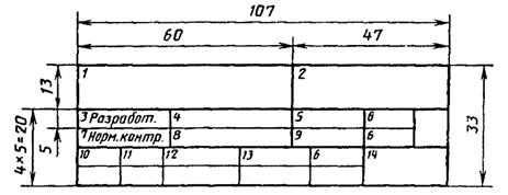 При мелкосерийном и опытном производствах допускается штамп не проставлять. Обозначение документа, подписи разработчика и нормоконтролера выполняют над основной надписью или на свободном поле чертежа.