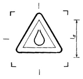 Символ должен представлять собой равносторонний треугольник зеленого цвета с красной каймой, с изображением капли белого цвета, расположенной в центре внутри треугольника (черт. 1).