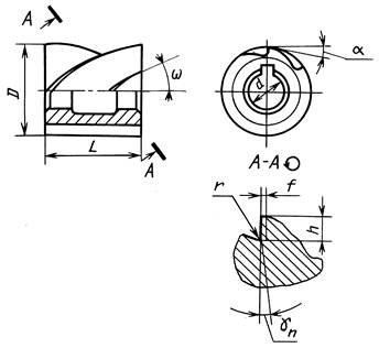 2. Угол наклона стружечных канавок w для фрез: